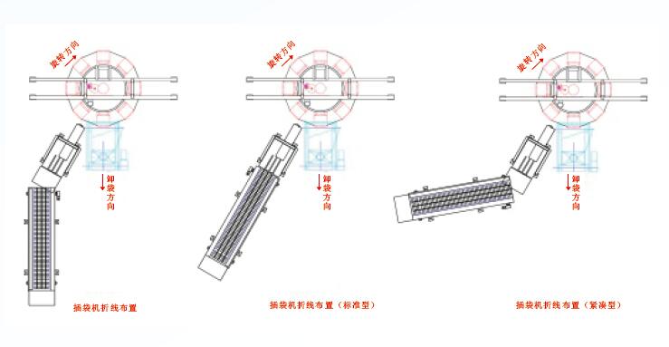 自動插袋機由主機、空袋輸送機二部分組成,也可再加上轉臺三部分組成。主機部分為核心部分,實現(xiàn)自動插袋功能;空袋輸送機是將10-15個空袋成摞輸送至自動插袋機工作平臺;轉臺用于包裝機現(xiàn)場的場地限制,空袋輸送機空袋通過轉臺輸送到插袋機。主機和空袋輸送機組成直線工藝布置,增加轉臺后可以組成折線形式的工藝布置。插袋機配置專用電控柜,用于插袋系統(tǒng)的自動化控制,柜門上安裝的觸摸屏主要用于插袋機的參數調整。
